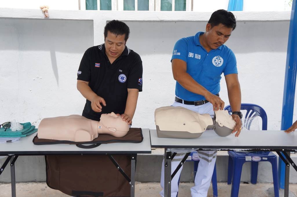 เจ้าหน้าที่สาธิตการช่วยเหลือผู้ป่วยหมดสติ