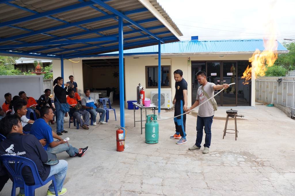 เจ้าหน้าที่สาธิตการดับเพลิงจากถังแก๊ส