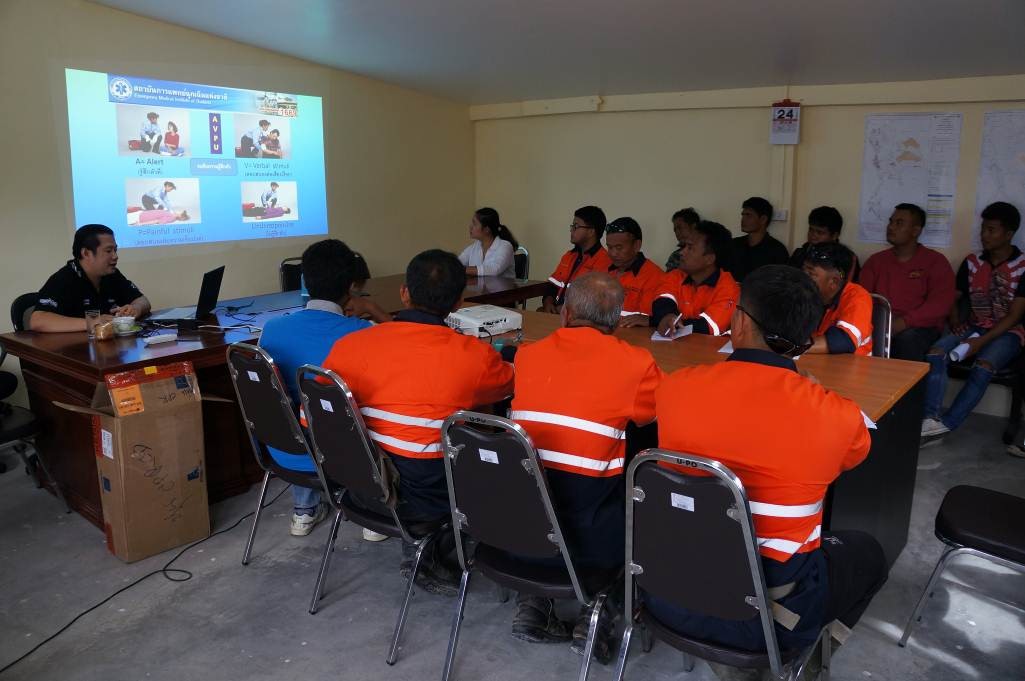 ขณะทำการอบรมด้านทฤษฎี ในการปฐมพยาบาลเบื้องต้น